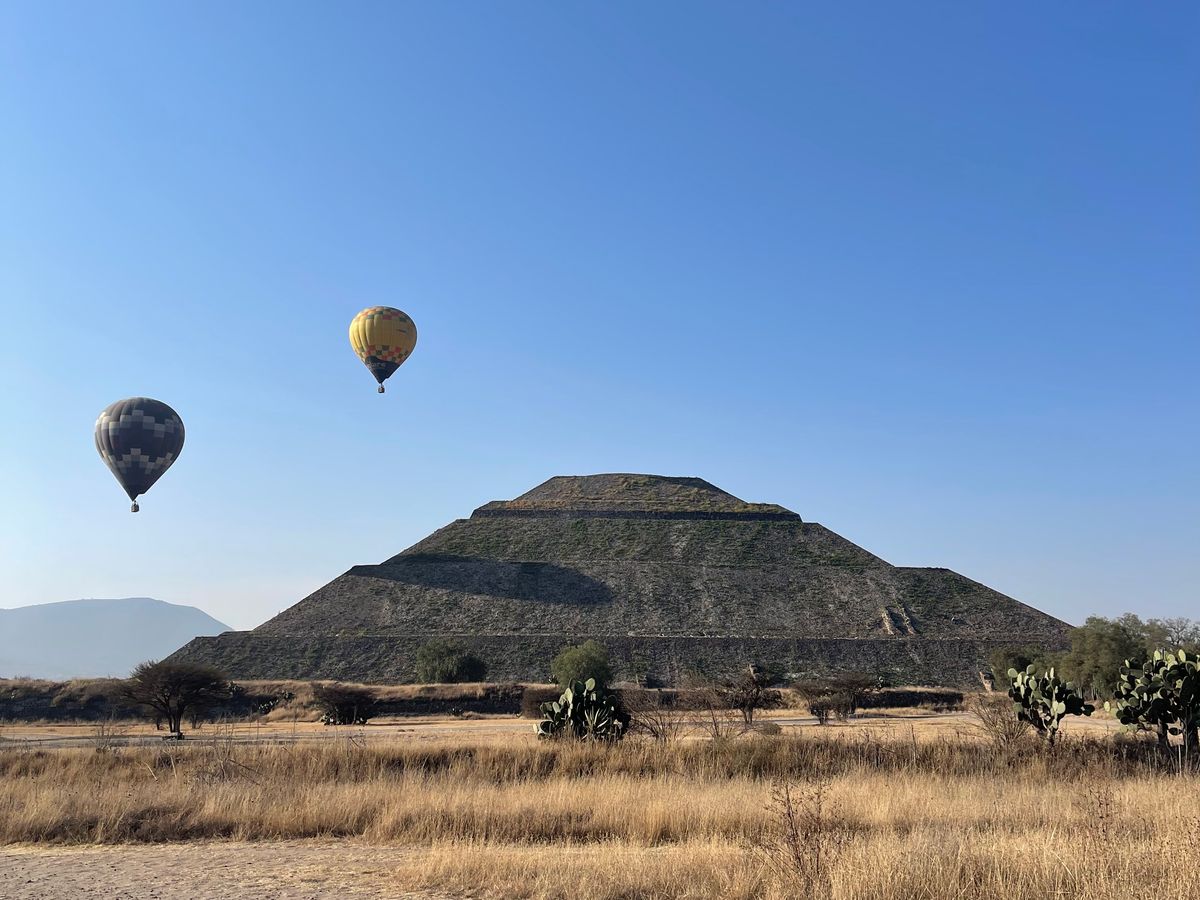 早朝4:30AMに、宿泊先のホテルに車で迎えにきていただき、その後他の参加者7名(2名3組と1名1組)をピックアップしたあと、熱気球の発着場に向かいました。6:00AM前に発着場に到着し、英語で解説を受けた後、出発まで順番を待つ間に、コーヒーのサービスとフリーで食べれる菓子パンがあり、結構美味しかったです。熱気球に乗っている時間は20-30分だったと思いますが、天候にも恵まれ、上空からのテオティワカンや他の熱気球(同時に20-30機は上がっていたと思います)の眺めなど、本当に素晴らしいものでした。1名での参加で、円安の影響もあり、日本円で47,000円程度と決して安いツアーではありませんでしたが、プライスレスの絶景でした。熱気球の着陸やその後の熱気球の片づけを見るのも良い体験でした。熱気球の着陸後は、車で再び発着場に戻り、朝食をとりましたが、コロンビアからレンタカーで来ていた4人組のカップルが声をかけてくれて、英語で朝食を一緒にしてくれたのも助かりました。その後、車でサボテン(アロエ)と黒石の解説のあるお土産屋に約1時間ほど寄った後、テオティワカンに向かい、約1.5時間の自由時間で、テオティワカン周辺を散策しました。ここでは、車に同乗していたオランダのアムステルダムから来ていたオランダ人とポルトガル人の二人の女性(英語ができる)にひっついて、行動させていただきました。30年ほど前に一度テオティワカンは訪れたことがありましたが、壮大なピラミッドは改めて見る価値がありました。12時過ぎにすべての行程を終了し、同じ車でホテルまで送っていただき、13:30くらいにホテルに戻りました。