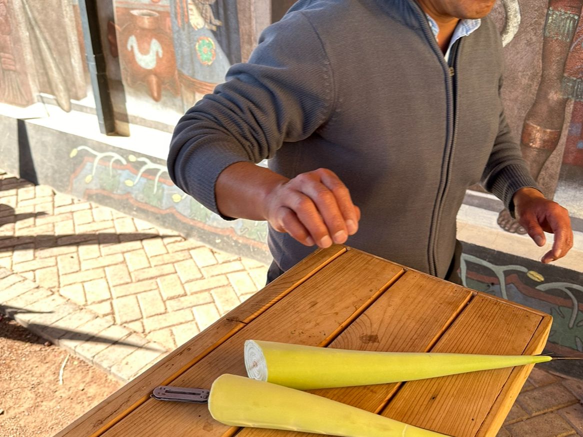 また、バスに乗っても遺跡に直接向かわず、土産物屋に行きます。ここでも1時間ほどでしょうか、時間を費やします。日本でもよくある土産物プランですが、まぁ致し方ないという感じでしょうか…。テキーラと黒曜石のお店で、英語で色々とサボテンの昔の使い方など教えてくれます。