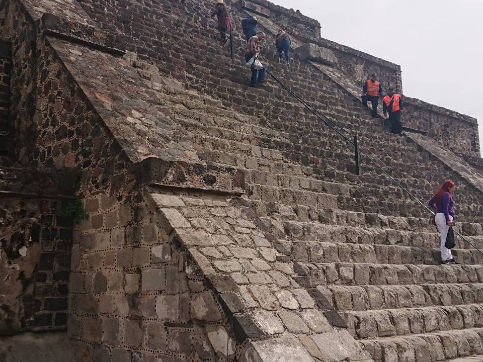 テオティワカンでは、時間が十分に取られているので、太陽のピラミッドに登ることができます。月のピラミッドのほうまで回ることもできます。メキシコシティは標高が高いので、急なピラミッドの段を登るのには酸素が薄いため注意が必要です。