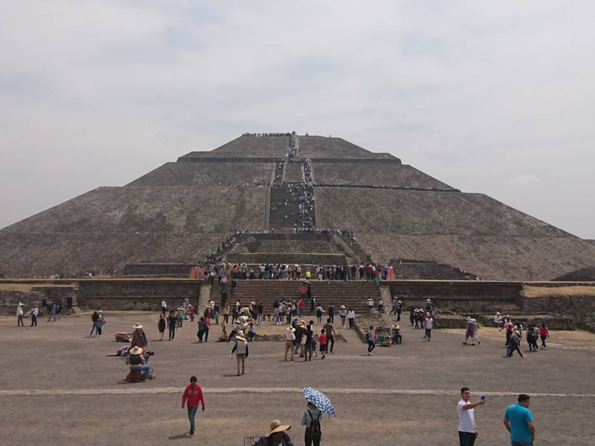 日本の春分の日に近く 太陽のピラミッドの真上に太陽が来るとかで大勢の観光客がいました