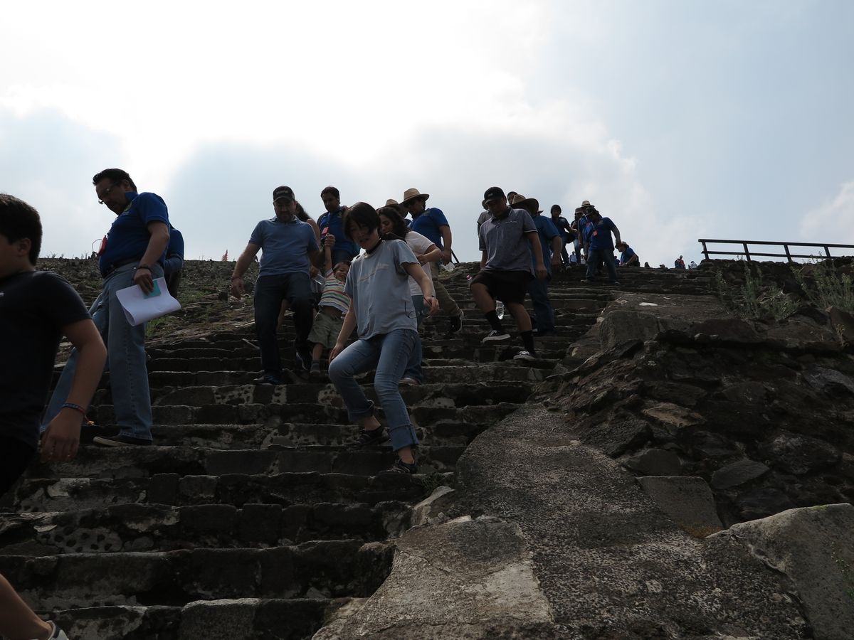 メキシコまで行って,こんなコメントも何ですが。私,高いところが苦手で不安で参加しました。月のピラミッドは手すりがあったのでなんとかなりました。太陽のピラミッドは,手すりがなく断念でした。そのあたりは,ガイドさんも同行していなかったので,より不安でした。