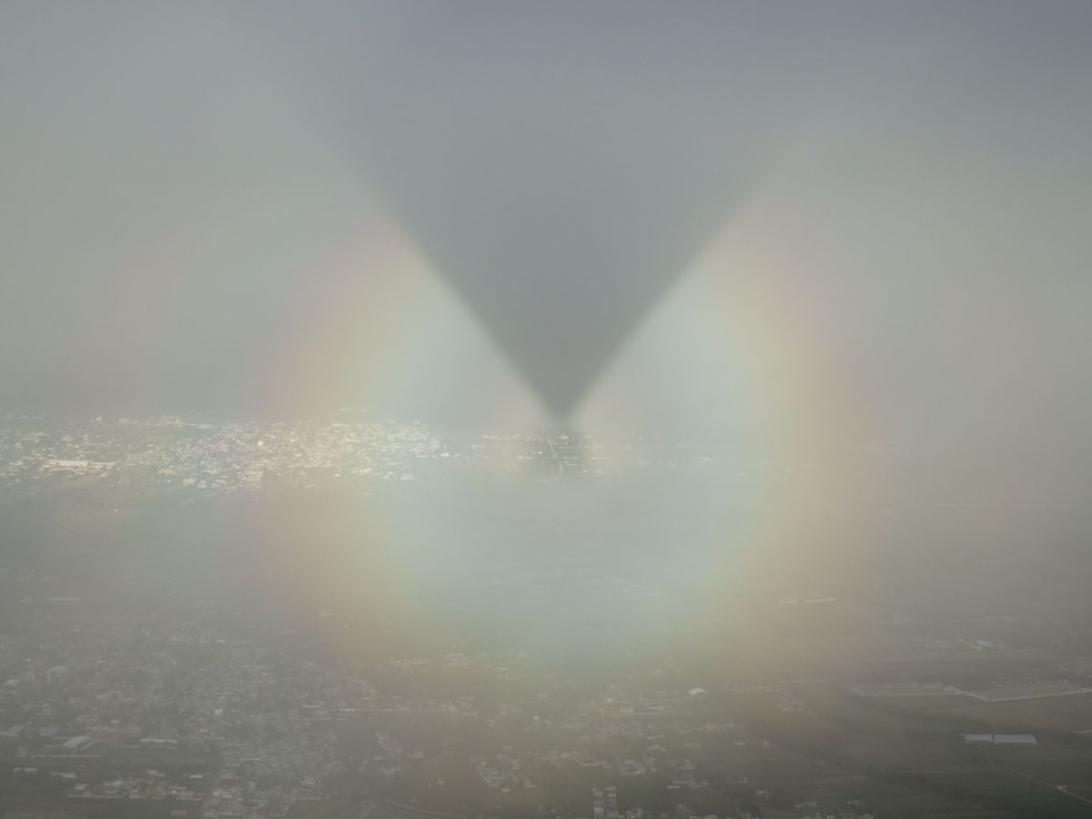 途中、日の出とともに少し靄がかかり、円形の虹が発生!虹の中に、気球の陰が浮かび幻想的な現象にも遭遇しました。