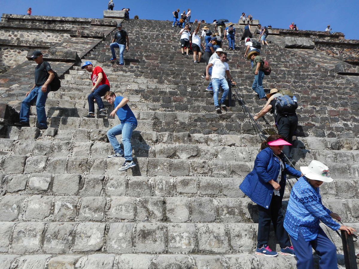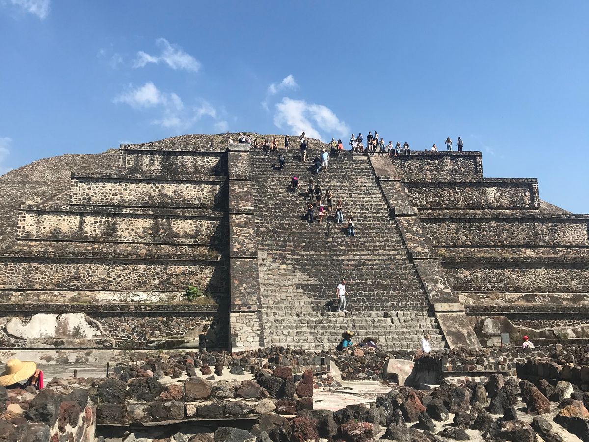 太陽のピラミッドと月のピラミッドの両方を無事に登頂することができました。メキシコシティを出たのは朝だったので寒かったですが、テオティワカン遺跡に着くのは11時位で本当に暑いため、日焼け止めや帽子、飲み物は必需品です。私どもが行ったのは年末の土曜日だったので、若干混雑してる位でしたが、日曜日はメキシコ人は無料のため非常に混雑し、登頂することができない日もあるそうです。これから参加される方は、可能であれば日曜日は避けた方が良いです。