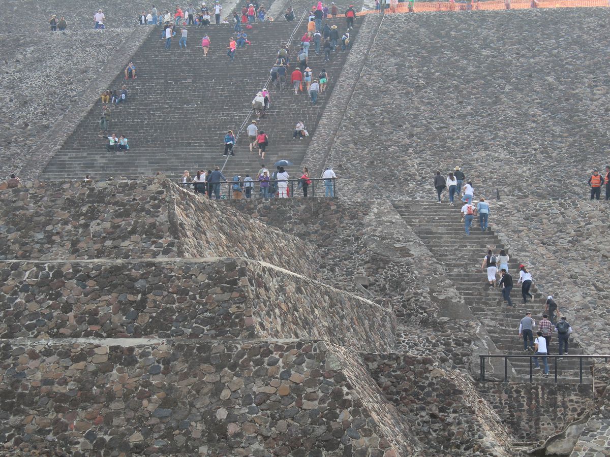 市内観光は後回しにして、一番にテオティワカンに向かったのは大正解でした。一番に太陽のピラミッドに登頂したのですが、それでも渋滞が始まっており、下山した時には麓で足止めの大行列となっていました。