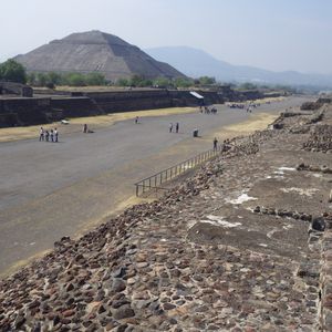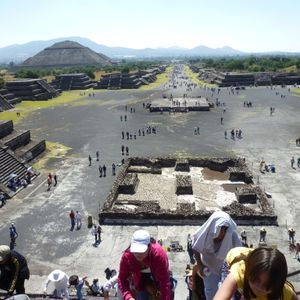 テオティワカンでは、時間が十分に取られているので、太陽のピラミッドに登ることができます。月のピラミッドのほうまで回ることもできます。メキシコシティは標高が高いので、急なピラミッドの段を登るのには酸素が薄いため注意が必要です。