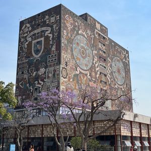 途中、メキシコ自治大学の有名な図書館の壁画も見せてくれます。