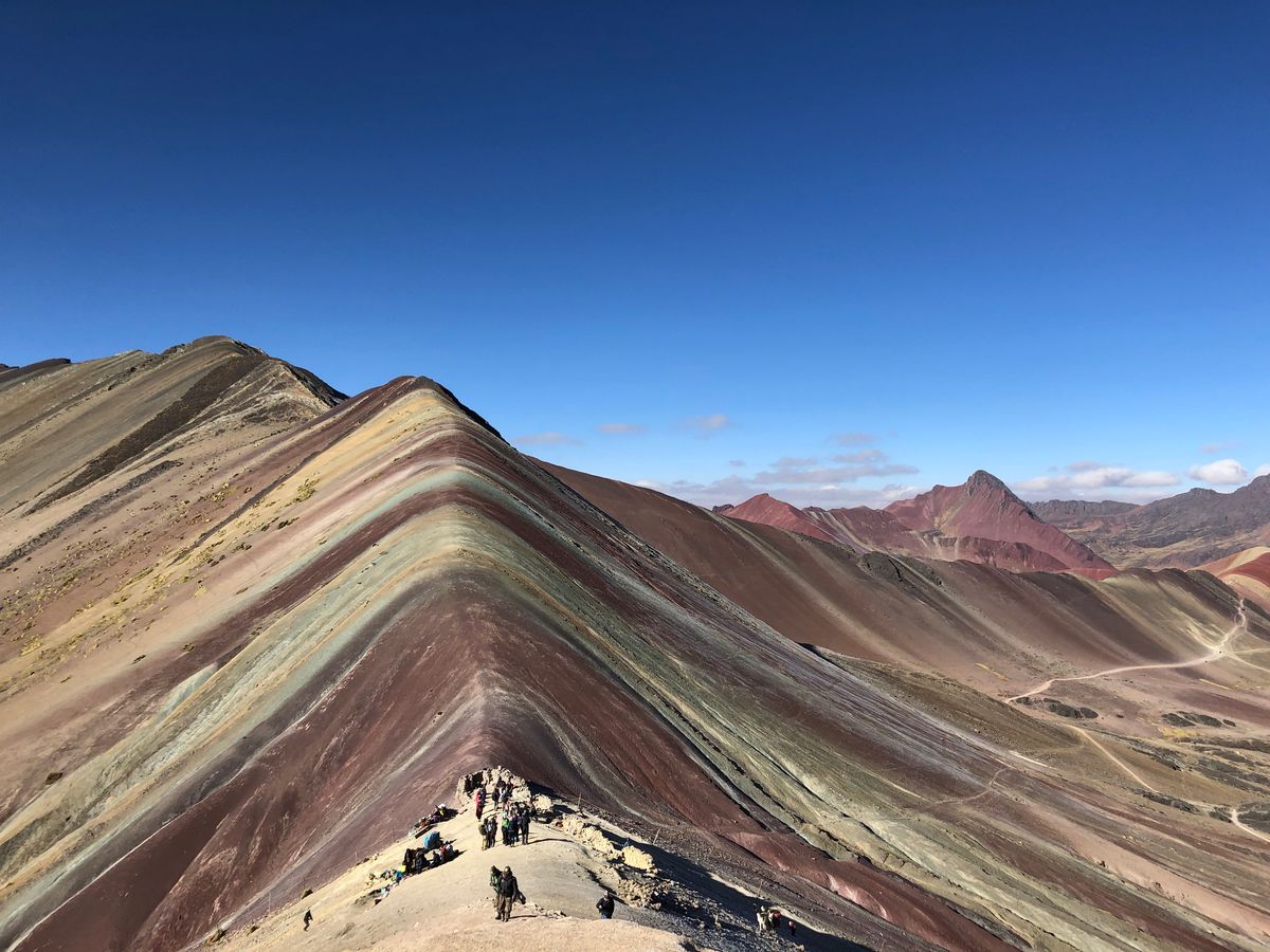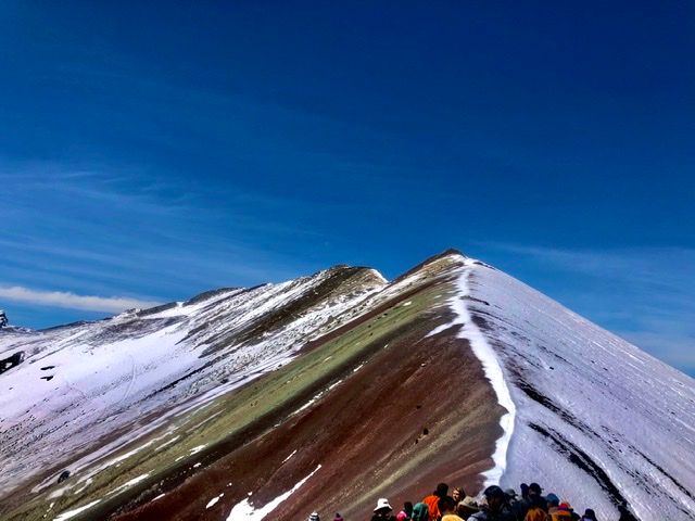 ペルーといえば、マチュピチュ!ということで今回の旅行のメインにマチュピチュを訪れる計画をを立てていました。そして、次いでにどこか観光名所に行けたらいいな〜と、思って探している時にレインボーマウンテンの存在を知りました。なので、見れたらラッキーな気持ちで参加しました。しかしマウンテンなので、頂上に着くまではとても大変です。行きは歩きで、頑張りました!途中の景色も日本では見ることができない山々、動物達の姿。高山なので息もきれぎれ、休み休みでしたが、なんとか頂上に到着しました。そこから見る景色は、登った人だけが見ることができる景色です!写真や映像では伝えることができない、やっぱり現地で実際に見て感じることの大事さを感じました。マチュピチュの次いでではなく、メインの一つだな、と思いました!