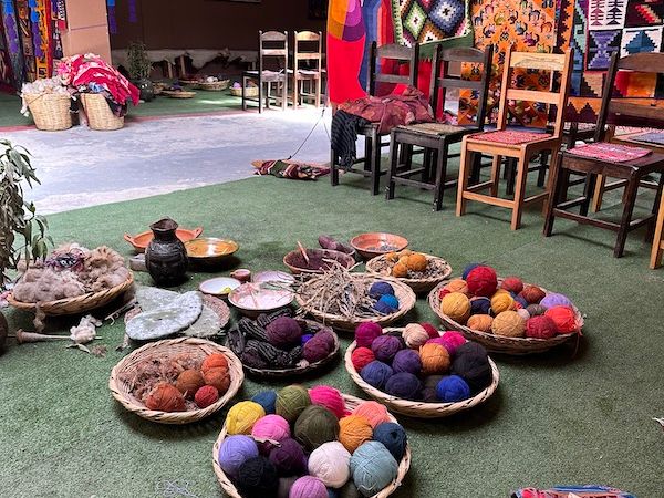 チンチェロの遺跡を散策したあと、チンチェロの文化紹介施設やユカイ村のテーマミュージアム/ユカイ博物館でインカの織物、染色技術、チチャなどの実演と話を聞きます。村ごとに衣装の色使いが異なるなど、なかなか興味深い内容でした。