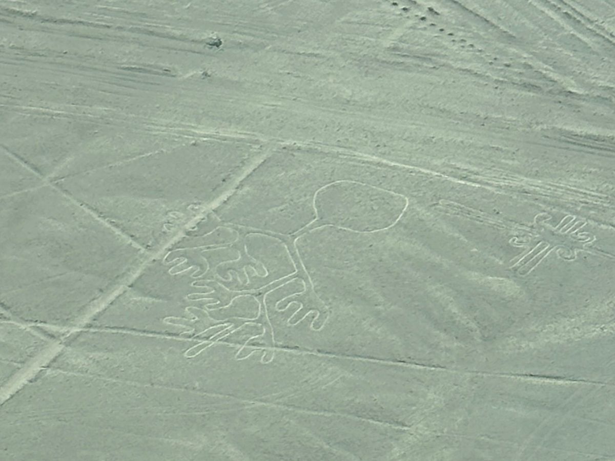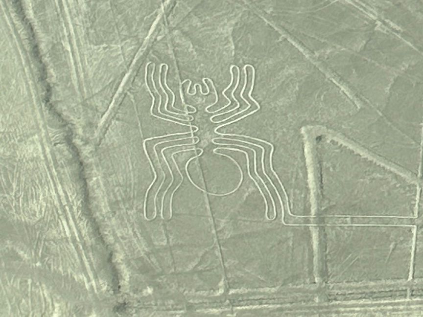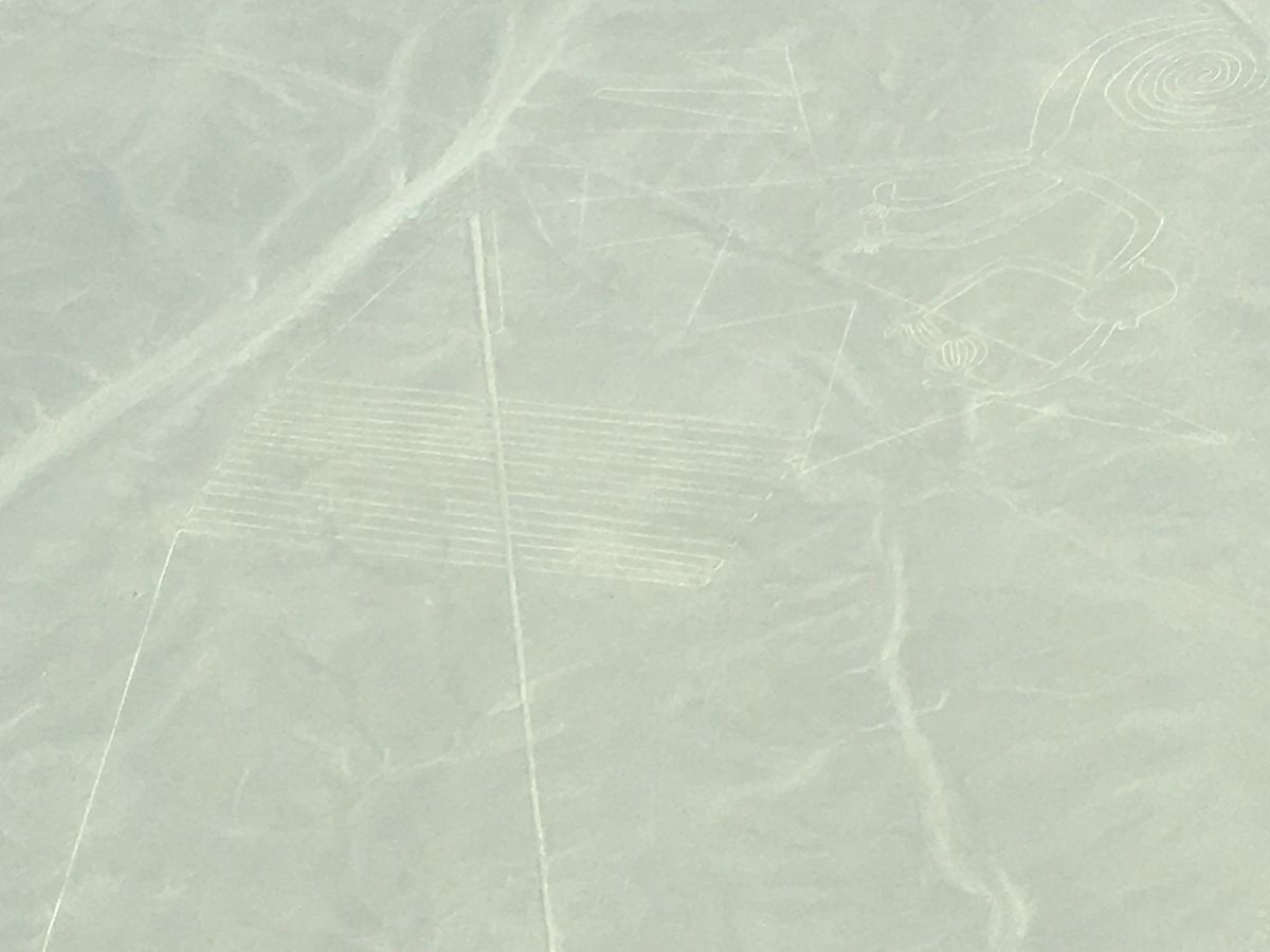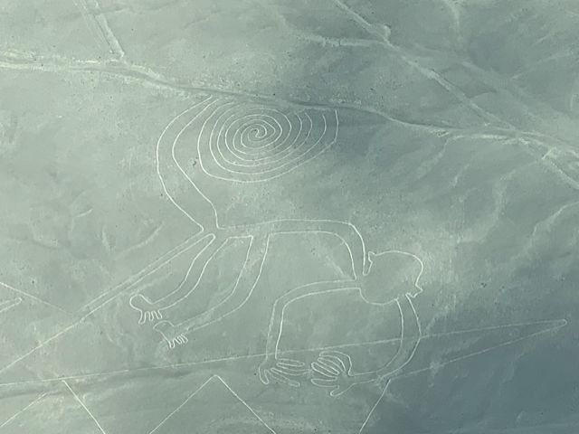 セスナが地上絵に地面すれすれくらいまで寄ってくれるので簡単に発見可能。パイロットが日本語でも「まえまえ、ひだりひだり、はねよこ」等日本語でも位置を伝えてくれるサービスの高さ。終了後、パラカスのおしゃれなお店でランチしました。パエリアみたいなのが美味しかったです、何より初めてペルー料理のセビーチェ(新鮮魚介のマリネ)を食べて、それが特に美味しかったです。