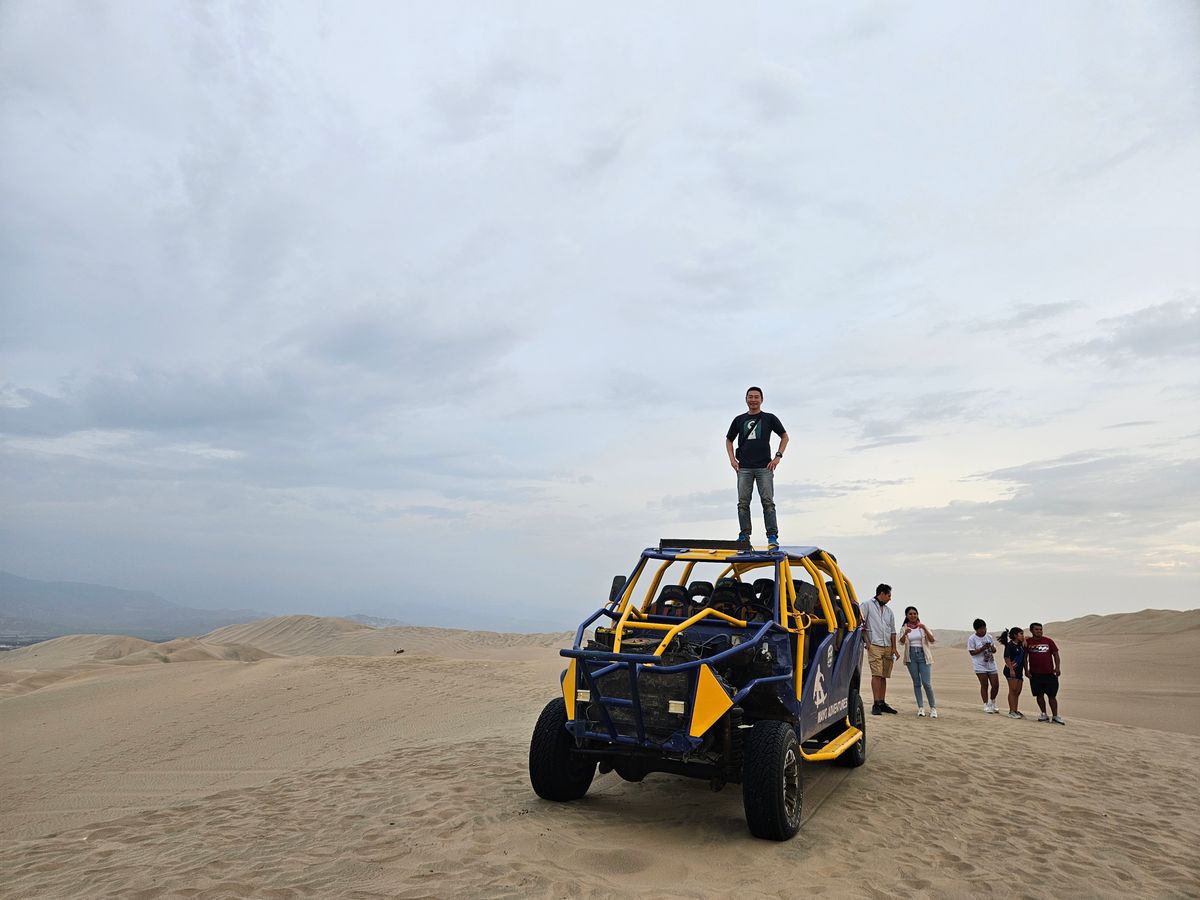 メインのナスカを見たら、そのあとはワカチナオアシスへ。想像していた以上に,最高のアクティビティでまず砂漠の綺麗さが圧巻。そしてサンドバギーはは複数人で乗合で運転してもらいます。とても迫力がありまるでジェットコースターに乗っているかのように坂道も降ります。相当盛り上がります。サンドバギーだけではなく,ボードですべる体験もさせてもらいます。かなーり濃厚な時間ですがオアシスも綺麗で夕日も綺麗でした。暗くなるくらいまで遊びオアシス少しだけ散歩させてもらいましたが相当綺麗です。