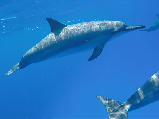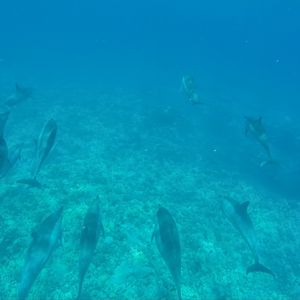 海の中で見るイルカの大群は圧巻でした!!イルカが私のそばを泳いでいきました!