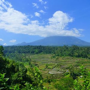 これが、アグン山をバックに広がる棚田を眺めながらの昼食で、