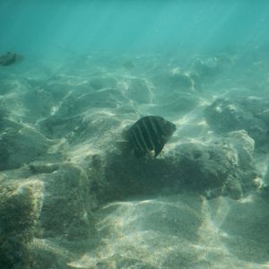 開始時間7時のツアーに参加すると砂浜から見て左側の山から太陽が昇ってきてすごく綺麗で、得した気分になりました。いい気分で海に潜ると、そこには20匹ほどの群れが出現しました。持参した水陸両用カメラで満足するまで写真を撮りました。8時を過ぎたら問題無いと思いますが、朝はやはり少し肌寒いので、濡れても良い上着とタオルは持参した方が良いと思います。シャワーもトイレもちゃんとあります。妻は泳げないのですが、スノーケル着けて顔浸けただけでも綺麗な魚や海底が見えるので泳げなくても楽しめると思いますよ。水深も深くはないです。今回の旅行で一番の思い出になりました。