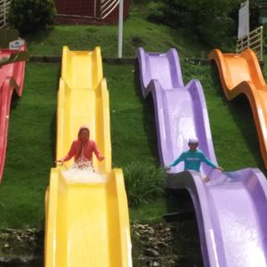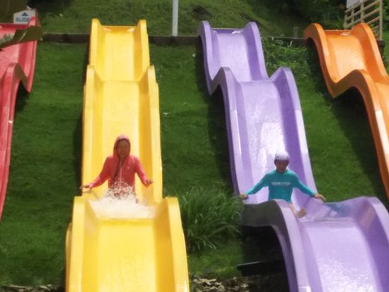 二人乗りや三人乗りの浮輪で数種類のスライダーができるので家族で楽しめました。午後からはある程度空いてくるので少し並ぶだけでok!