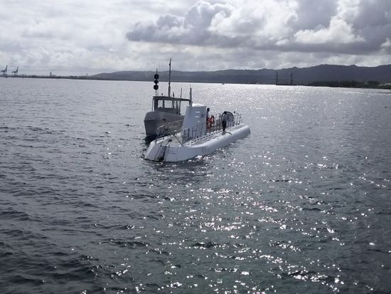 ボートで景色を楽しみながら潜水艦のポイントまで行き乗り込むといよいよ始まりです!