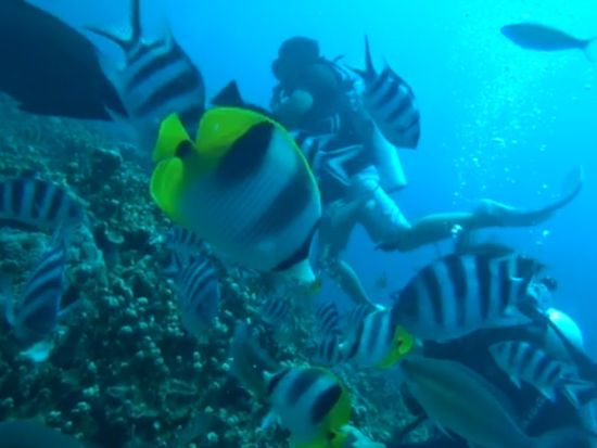 海底でエサを撒いて魚が寄ってきたときが一番興奮しました。