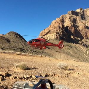 ストリップ通りから高速道路を約30分ほどドライブした空港からヘリコプターツアーが始まります。素晴らしい景色の中、グランドキャニオンに着陸し、簡単な朝食とスパークリングワインを堪能しました。費用はかかりますが、時間が無い方にはお勧めです。