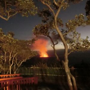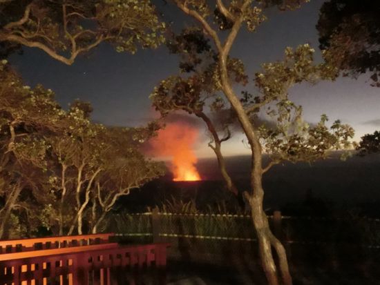 暗くなってからは水蒸気に火口の溶岩の明かりが映って、まるで噴火しているみたいに赤く見え、大興奮!