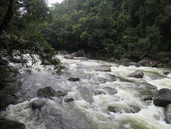 雨の中キュランダに行きました。列車では霧の中、かろうじて滝が見えました。コアラだっこやアーミーダックはぬれることはなく屋根の下で楽しむことができました。キュランダ村にも軒がついているので買い物は傘無しでも大丈夫でした。
