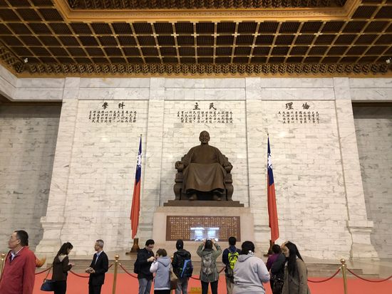 行天宮では台湾独特の占いの作法、忠烈祠では衛兵交代、中正紀念堂は回収中でしたが蒋介石先生の像をみて、故宮博物院ではあの有名な白菜と角煮を拝見。