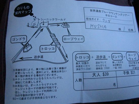 シドニーの滞在時間が少なく、まるまる1日のツアーではなく、てっとり早くブルーマウンテンズに行けるツアーを見つけていたので、こちらのツアーにしました。公共交通機関で行こうとすると3時間くらいかかってしまう(ガイド談)そうですが、数か所のホテルをピックアップしつつでも2時間くらいで到着しました。バスの中でも、ガイドさんがシドニーのこと、道中の町のこと、オリンピックのこと、本当に詳しくずーっと説明してくれました。思っていたより、ブルーマウンテンズのシーニックワールドの乗り物群はコンパクトにまとまっていた感じです。昼食付きではないですが、シドニーの下車ポイントは2か所でロックスのデューティーフリー前と、街なかのタワーのところだったので、戻ってからも十分ランチが楽しめました。