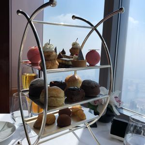 アフタヌーンティーの構成は、最初に小さな前菜、綺麗なサンドイッチ、小さなメイン(肉か魚)、最後にデザートでした。満足のいく内容でした。お値段は一人15000円位とかなり高価でしたが、2時間程も圧倒的な眺望と素敵なお料理、バイオリンの生演奏を堪能出来ましたので大満足です。