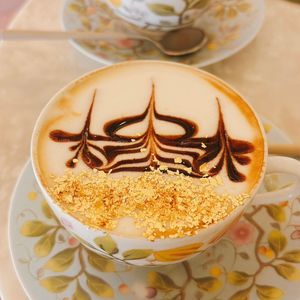 受付を済ませ、席へ案内されると程なくして金箔カプチーノが運ばれました。