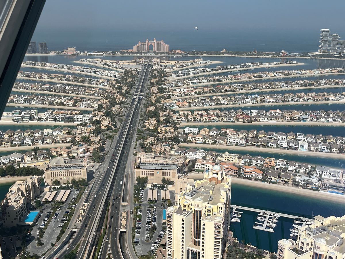 ホテルまで車が迎えに来てくれて、集合場所まで送迎。そこからカートでブルジュ・アル・アラブに行く。一階を見た後、エレベーターで上層階に移動。部屋の案内を受ける。金ぴかの内装で説明によると開業から内装を変えていないということ。映像からしか見ることができないところに実際に行くところがいい。自分は金ぴかすぎて泊まりたいとおは思わないが、他では見ることができないのでドバイに来たという感じがした。眺望もよく、1ドリンクを頼んでいたので飲みながら上層階からドバイの景色を楽しめた。