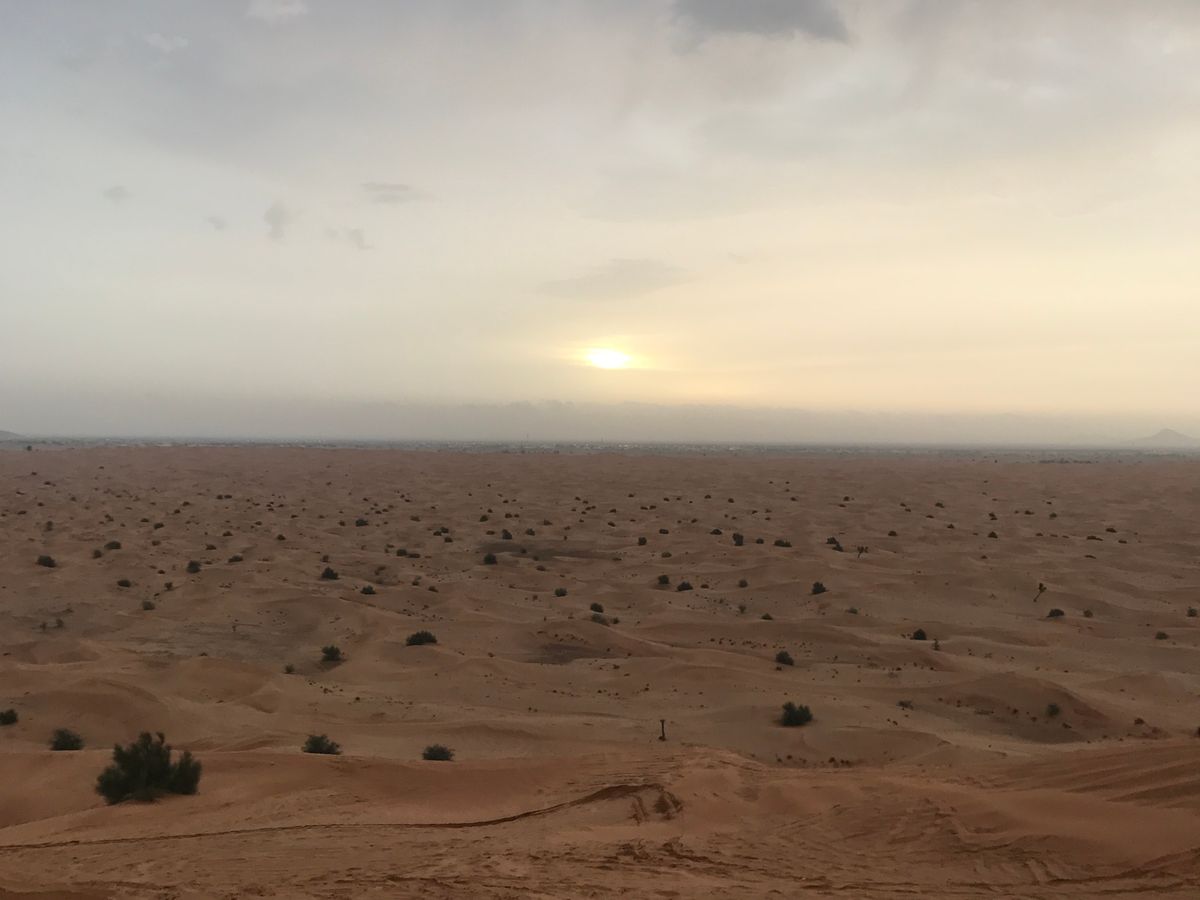 日の出見学ツアーに参加しました。ドバイで雨は珍しいみたいですが、当日は雨が降ったりやんだりの天気で、日の出の方も若干見えた位でした。