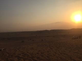 車で1時間ほどで、ドバイの市街地とは対照的に、目の前一面に広がる砂漠が、別世界のようでした。砂漠のサラサラな砂にも感動。夕暮れ時には、沈む夕日を見ながらロマンチックな時間を過ごせました。ガイドさんも、とても親切で写真をたくさん撮ってくれました。さすが撮影ポイントを知っていて、どれも素敵な写真ばかりでした。砂漠へいくまでのドライブは、すっごくエキサイティング。急勾配がすごいし、かなり揺れるから、車酔いの心配があったけど、そんなことを忘れるくらい楽しめました。こんなドライブは、他では味わえない体験と実感しました。キャンプ地では、ラクダに乗ったり、夜空の下でBBQを食べたり、12月の夜の砂漠は、かなり寒かったけど、昼とは違う夜の砂漠も素敵でした。真っ暗な中で見る星空やペインティング、水タバコなどアクティビティも満載。英語ガイドのツアーだけど、英語がわらかなくっても全然大丈夫。十分に楽しめます。ほんとに、充実した内容のツアーで素敵なアラビアンナイトが体験できない、最高でした。次回、ドバイに来たら、また参加したいなぁと思います。次回は、砂漠に一泊っていうのも有りかなぁと。