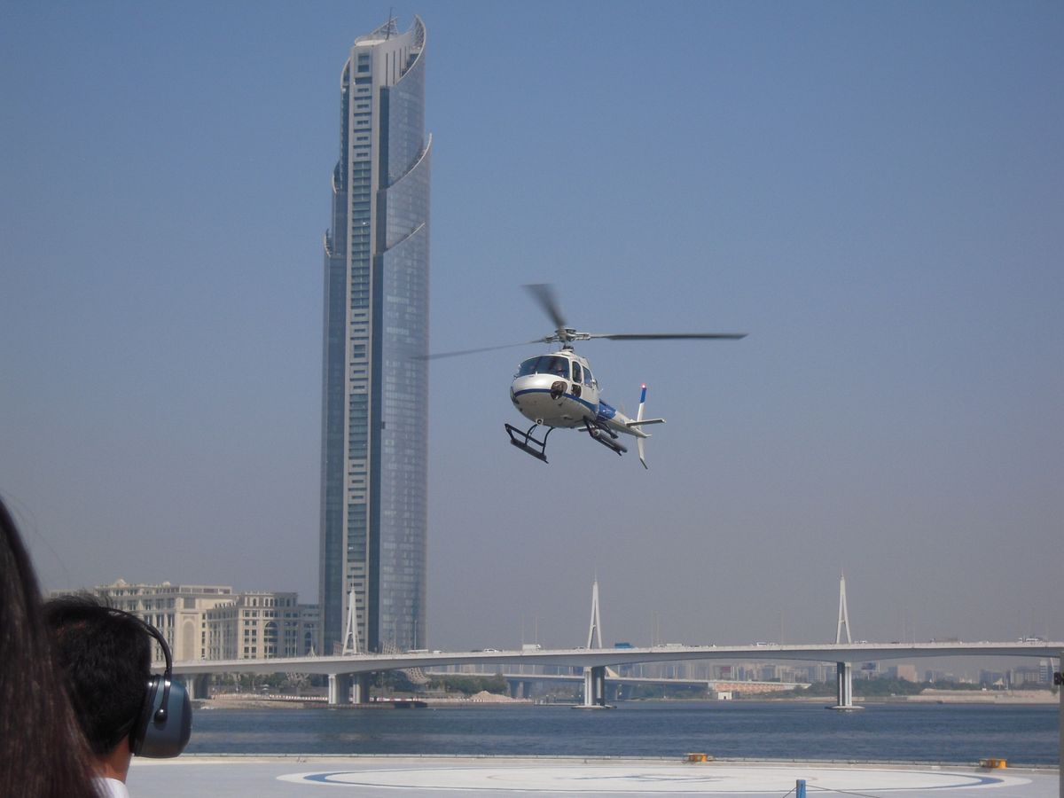 夕方の別コースも申し込んだのですが、こちらも午後からで大丈夫と思って午後を申し込んだのですが、時間が危ないとのことで、午前を案内されました。でもそれが正解でした。参加者の体重を測ったりして、いろいろ分けるので乗るまでに結構時間がかかりました。 乗り込んだら…もう夢のようなひと時でした。立ち並ぶ高層群、それを作った人智、まだまだ開発途中のドバイの街並み・・・とても勉強になりました!!