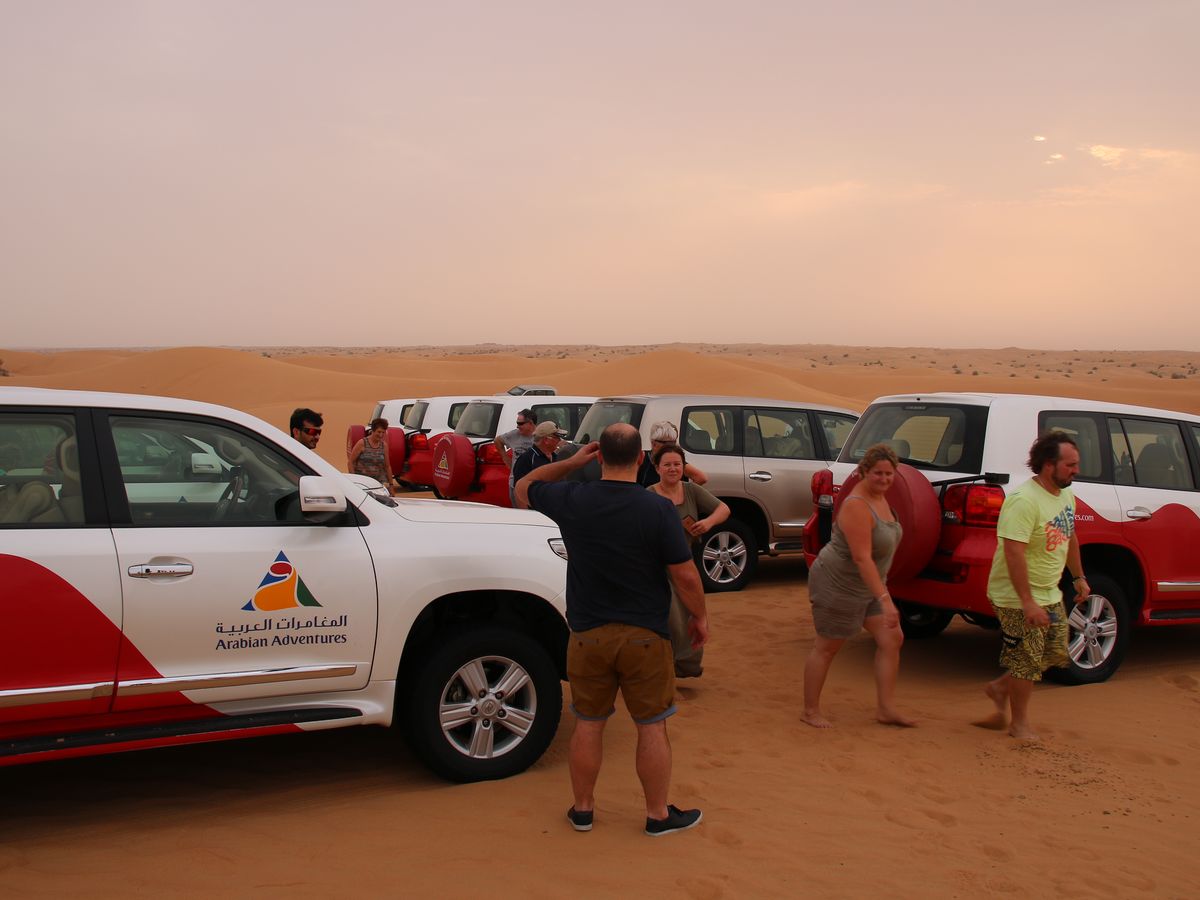 1時間ちょっとで砂漠に到着。他のグループと一緒にファルコンショーを鑑賞した後、本番開始。砂漠内の起伏のあるところを数十台の隊列を組んで疾走です。ドライバーの方がサービス精神で特に激しい起伏の所を走ってくれたので、さながらジェットコースターのようで楽しかったです。