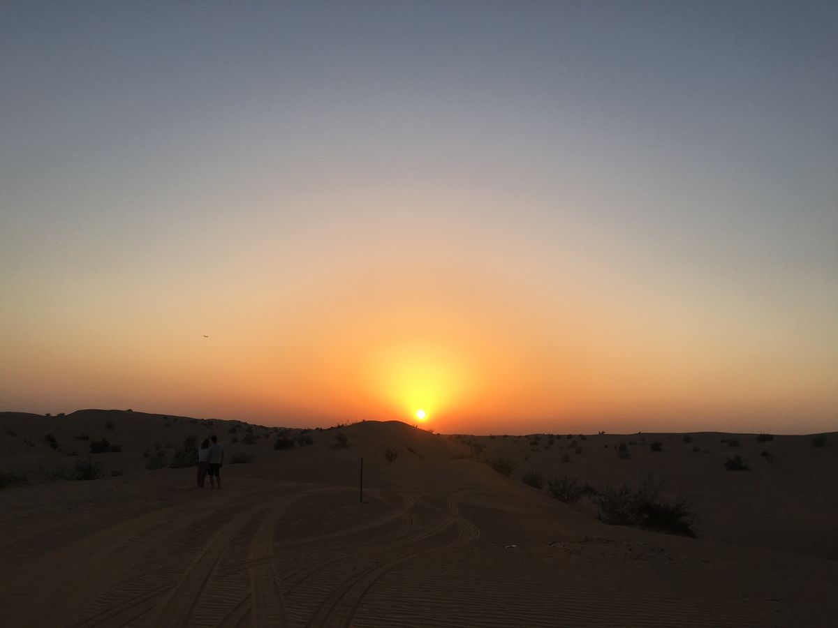 砂漠の夕日は最高でした。
