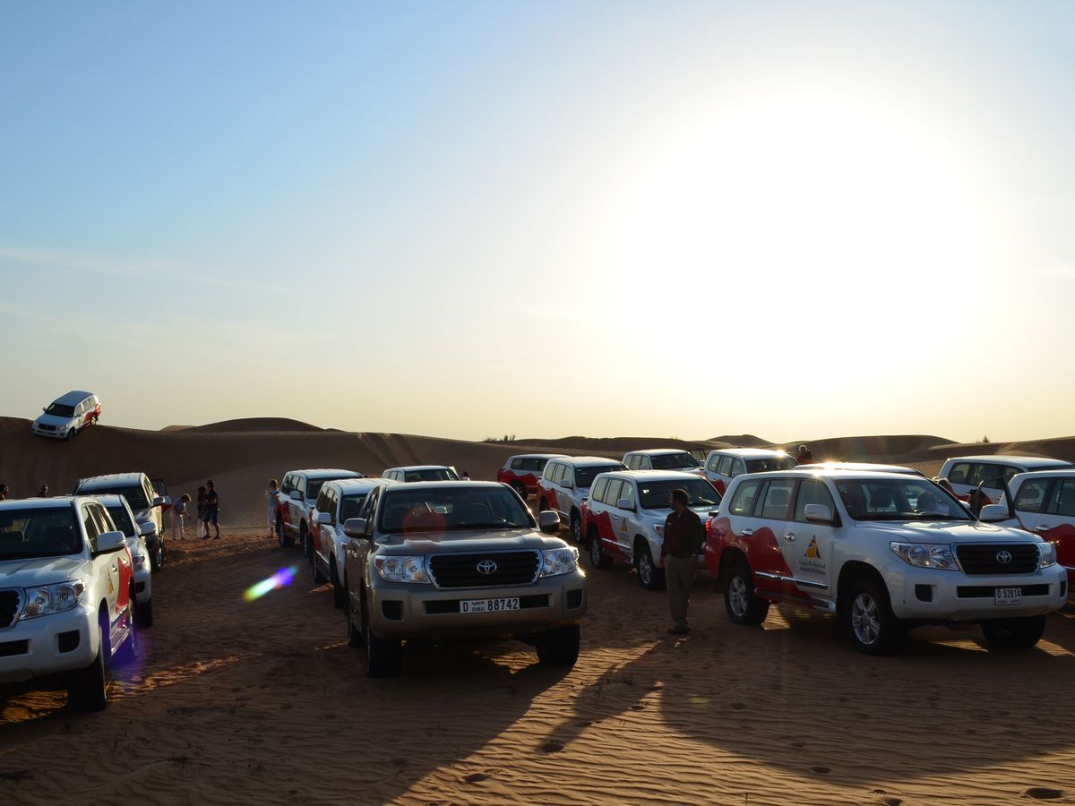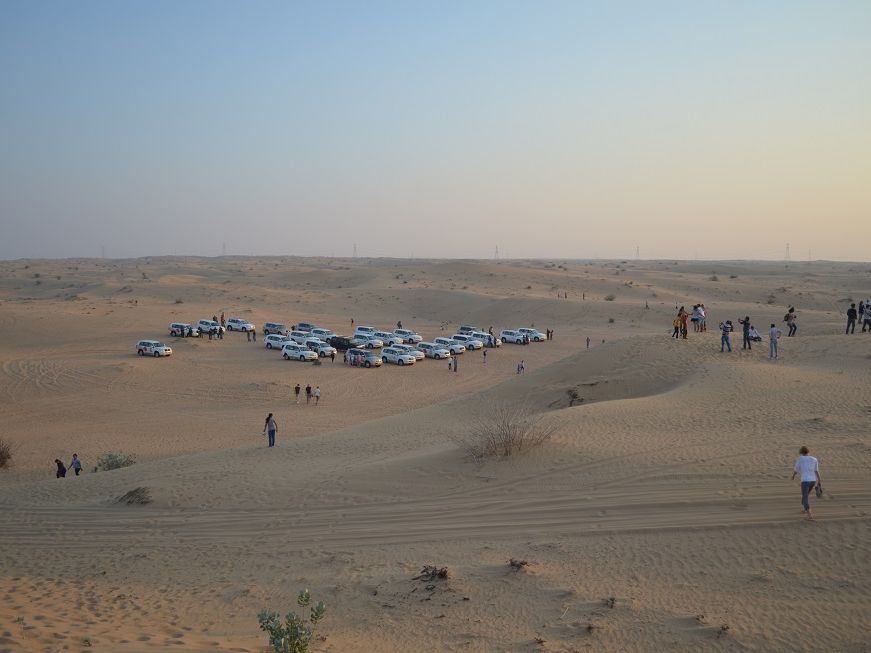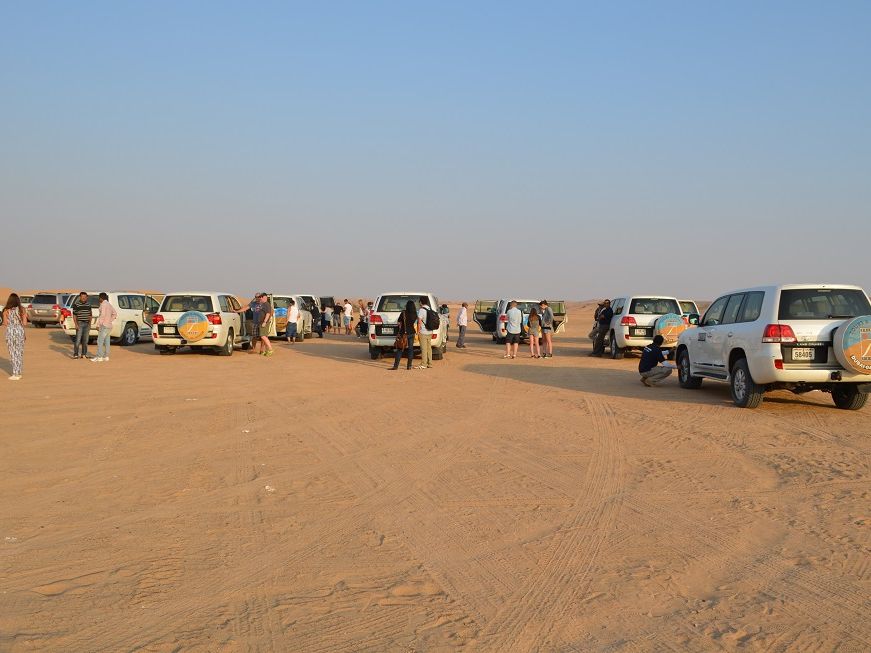 この会社は噂によるとドバイで一番の、デザートサファリツアーの会社のようで、会社のロゴがはいった車が当日50台ほど一斉に移動していました。