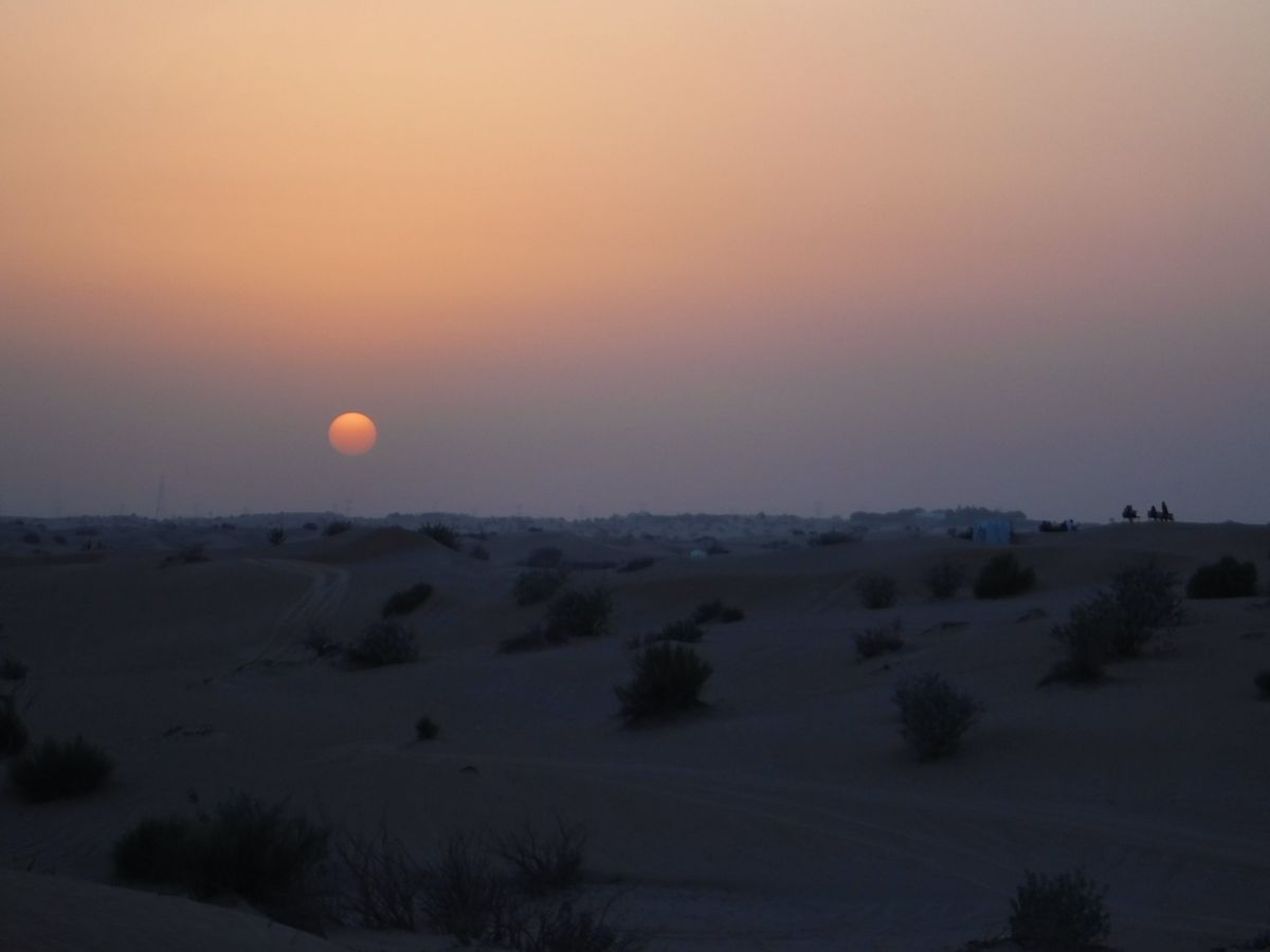 砂漠でみる夕日は、とっても力強かったです。