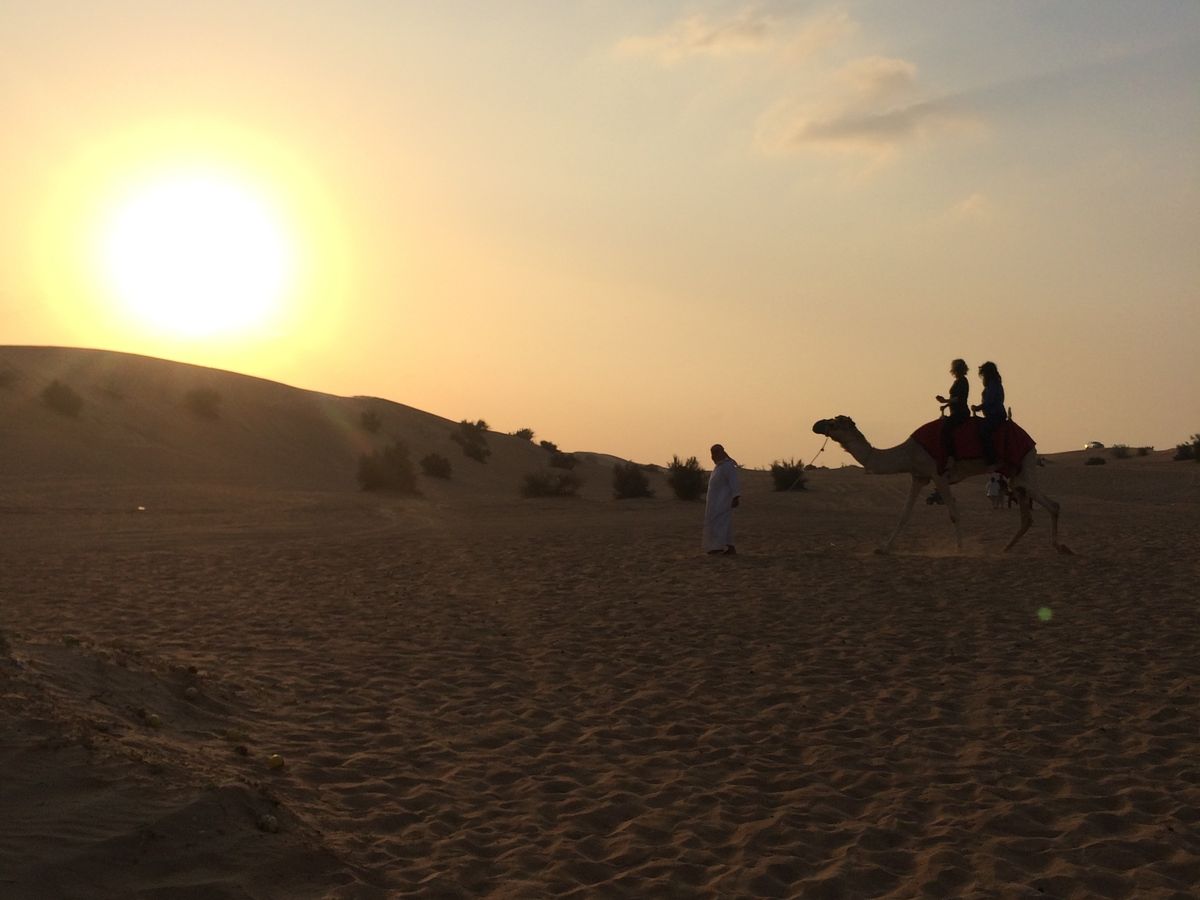 ドバイの砂漠ってそんなに大きいものじゃないかと思っていましたが大間違いで、とても広くて見渡す限り砂でした。しかもアップダウンの険しい砂丘をランクル4WDでスリル満点のドライブ!本当にここならではの体験でした。時間もちょうど良く太陽が沈む瞬間を砂丘の上で見ることができました。3月で季節も良かったので砂が冷たくて気持ちのいいこと。前半だけでも十分楽しめました。後半はラクダ試乗(軽く1周?)とベリーダンスにアルコール。飲み放題なので気分は極楽。お酒の厳しいアラブではご法度かもしれませんが、外国人にとってはこれ抜きでは語れませんね。インド人もアメリカ人もイギリス人も飲めば友達。世界中の人たちと楽しい一時を過ごせました。また行きたいです。お勧めです。