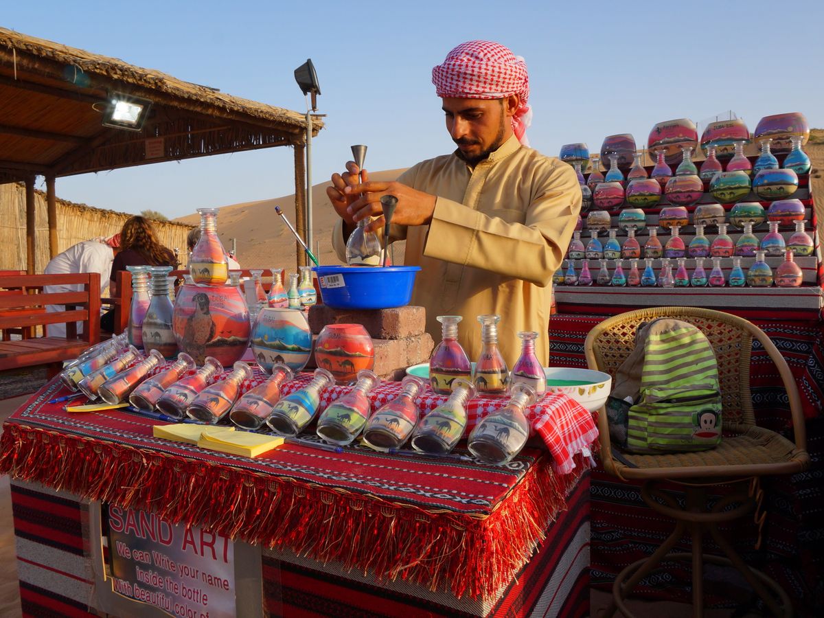 I visited Dubai by alone for traveling. I can't visit desert by myself, so I chose this tour. This tour was really great service. I enjoyed not only an exciting desert driving, but also ridding on a camel, an Arabic dinner, a sand board, henna art, smoking a hookah, wearing abayah and the belly dance show. And I purchased a sand art bottle. It's cute. The staff is friendly, I appreciate him who from Kerala. Thanks, this tour was really great, I recommend you.