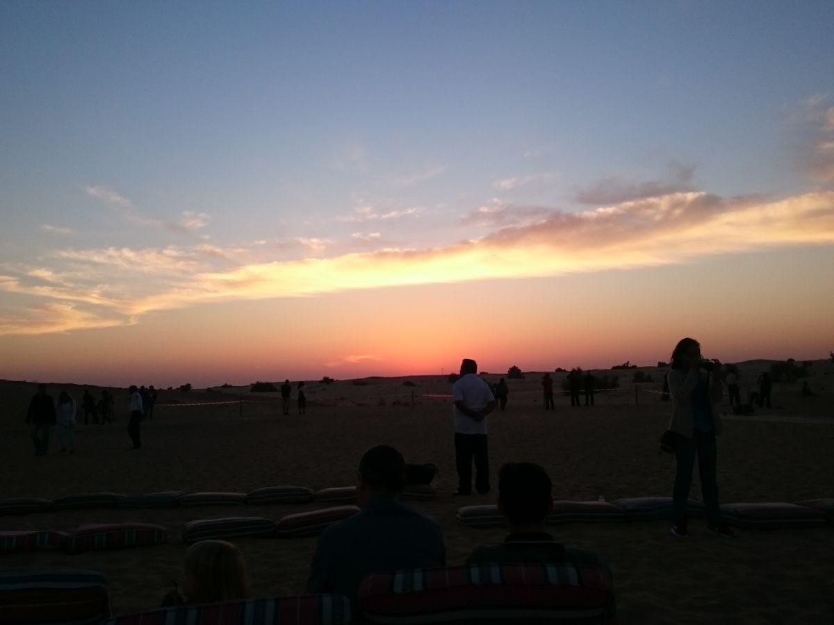唯一デザートサファリでよくなかった点が1つ・・・書かせてください。残念ながら同乗していたアメリカ人がなかなか自己中心的で大変でした。(ちなみに車には私と友人、アメリカ人3人、シンガポール人1人+ドライバーの系7人でした)。砂漠をワイルドに駆け抜けている中気分を悪くしてしまい何度も「止まって!吐く!」と叫んでました。実際に嘔吐されていて、何度も車を止めて外の空気を吸わせたりなどして、ああ気の毒だなとも思ったものの、周りの人に謝ることも無く、前に座らせてと横柄な態度をとり、すごく不快になりました。その方のせいでワイルドに運転していた運転手も途中から徐行となり、せっかく楽しんでいたほかの乗客はみんな物足りなさを感じてたと思います。また、何度も止まったせいで他の車と離れて夕日を見ることになりました。本当は別のベストポジションがあったんじゃないかな・・・と思っているので、そこは残念でした。こういった際、ずっと体調を悪くした人を乗せ続けるのではなく、別の車に移してキャンプへ連れて行くなど対応をしていただけたらよかったかなと思います。終始最後まで自分勝手にドライバーにあれやれこれやれといいつけ、一緒に乗ってる人たちなんていないかのような態度をとってる彼女には今でもいらっとします・・・。確かに酔ってかわいそうだったんですけど・・・常識無さすぎだろうと思っちゃいました。