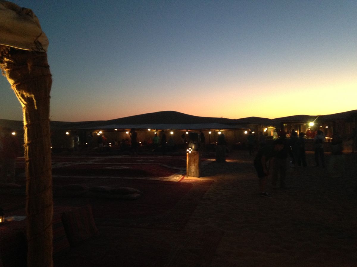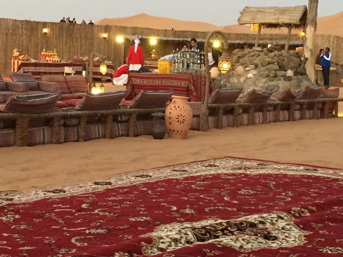 砂漠に絨毯を敷いてその上に机を置き、いい感じの硬さのクッションに座ってごはんをたべる感じも趣があってよかった!!