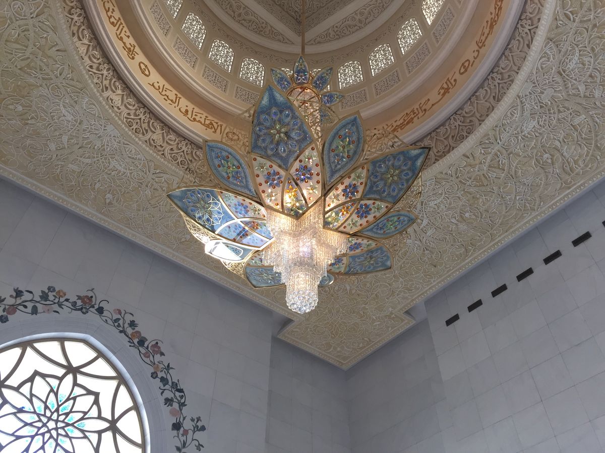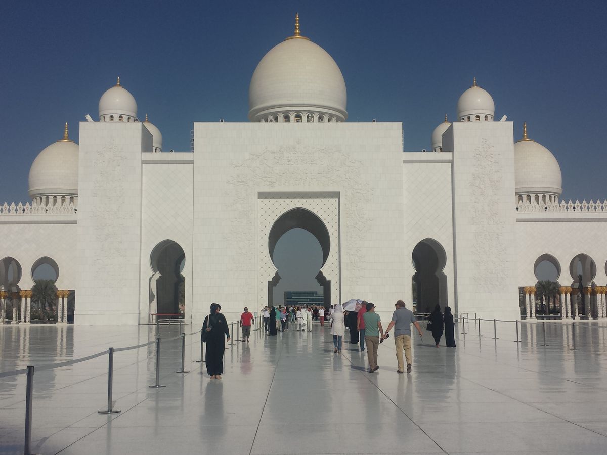ドバイから足を延ばしてアブダビに行ったのは、「シェイク・ザイード・グランド・モスク」を見たかったからで、正直それ以外は何も期待していなかったのですが、他にもたくさんいいところがありました。シェイク・ザイード・・・はホントに美しかったです。外も中も素晴らしかったし、時間もまあまあたっぷり取ってもらったと思います。服装に規制があるのは知っていたので肌の露出のない袖も長めのカーディガンを羽織りましたが、暑いのでかなり薄手の生成りのを着てたら、入り口で少し透けている、と止められました。焦っていたら、私たちの女性ガイドがかなり強引に「これは透けていない!」と押し通してくれ、無事入れました。