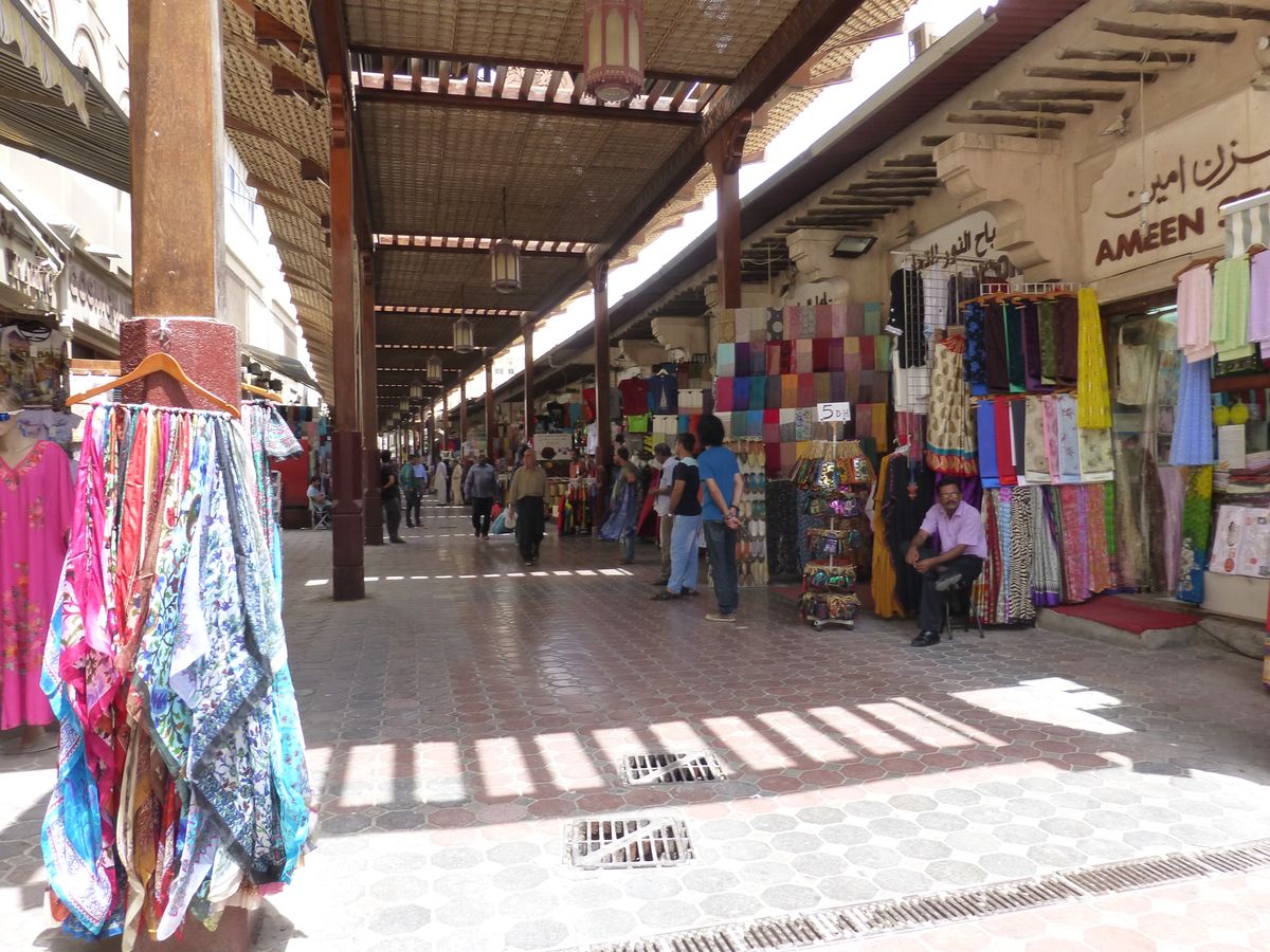 午前中は11:25集合でゆっくりしたスタート。オールドドバイの各スークを効率よく廻りました。ガイドブックでも良く書かれているように、テクスタイルスークでの勧誘はかなりしつこかったのですが、勧誘の言葉の1つが何故か「ちょっと待ってちょっと待ってお兄さん、ラッスンゴレライ」(笑)