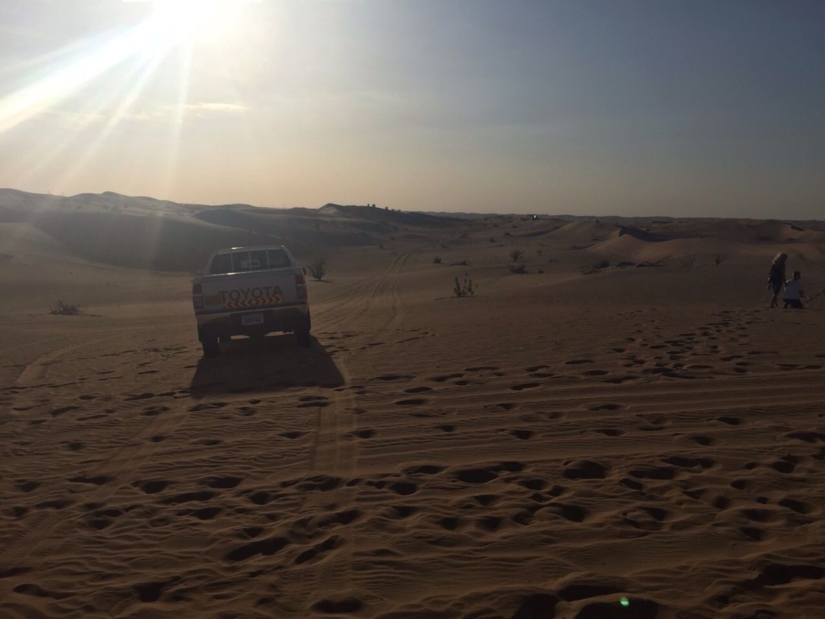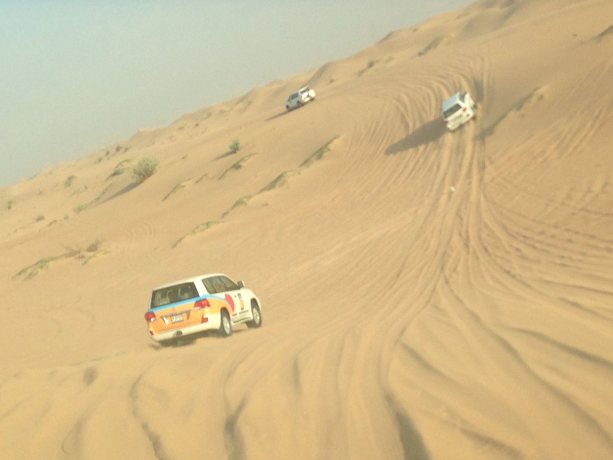 ドライブinデザートには大興奮、途中多分野生のラクダの親子もみることができました。移動に使われる車がまたキレイでそこにも感動。通常、砂漠ツアーの車はぼろぼろだと勝手なイメージを持っていましたが、そこはさすがUAE。