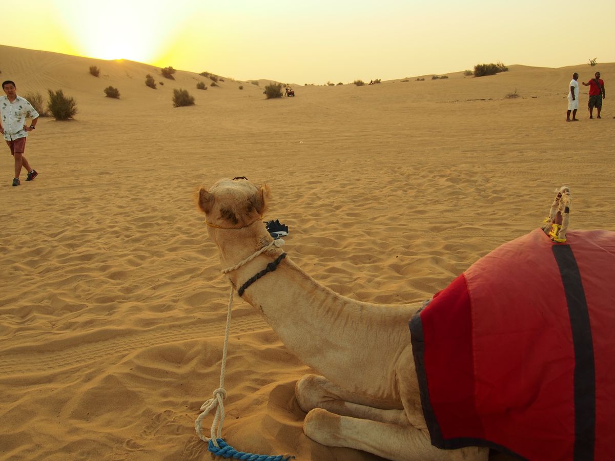 午後は、他のツアーとも合流し、日本人より欧米人の方が多くなりました。ドバイから車で約1時間で砂漠に到着。4WDで砂漠を疾走し、ジェットコースター気分を味わえます。砂漠では、ラクダ乗りや民族衣装試着もできました。ラストはBBQとベリーダンス。ドバイを満喫した1日になりました。