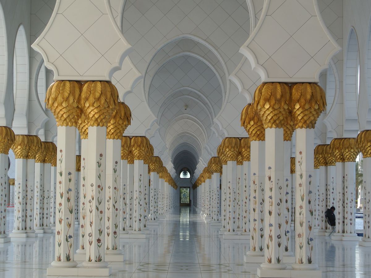 このモスクはUAE建国の父として愛され続けている故シェイク・ザイード元UAE大統領アブダビ首長国首長本人が考案した世界で8番目に大きなモスクです。2007年に完成と言いますから歴史的建造物というよりは現代の技術と叡智、贅沢を極めたモスクですね。