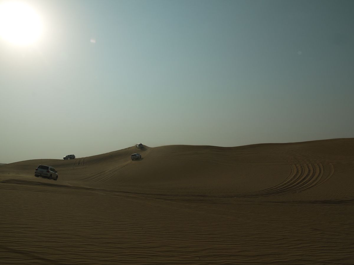 最初はネット等で下調べして聞いてたジェットコースターのように、荒々しく砂漠を駆け抜ける!というイメージでではなく、たくさんの車が一列に並び、ほとんどアップダウンのない砂漠を始まって10分くらいで進みます。
