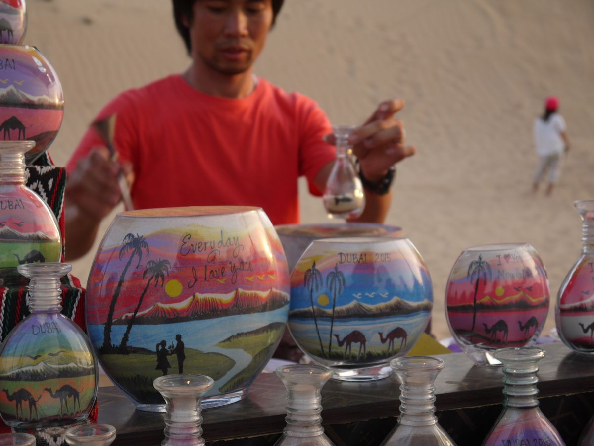 砂アートは小さいので30AEDくらい、中で50AEDくらい、大で80、さらに大きいので100位しますが、名入れを無料でしてくれたり、複数買うと値引きもしてくれました。