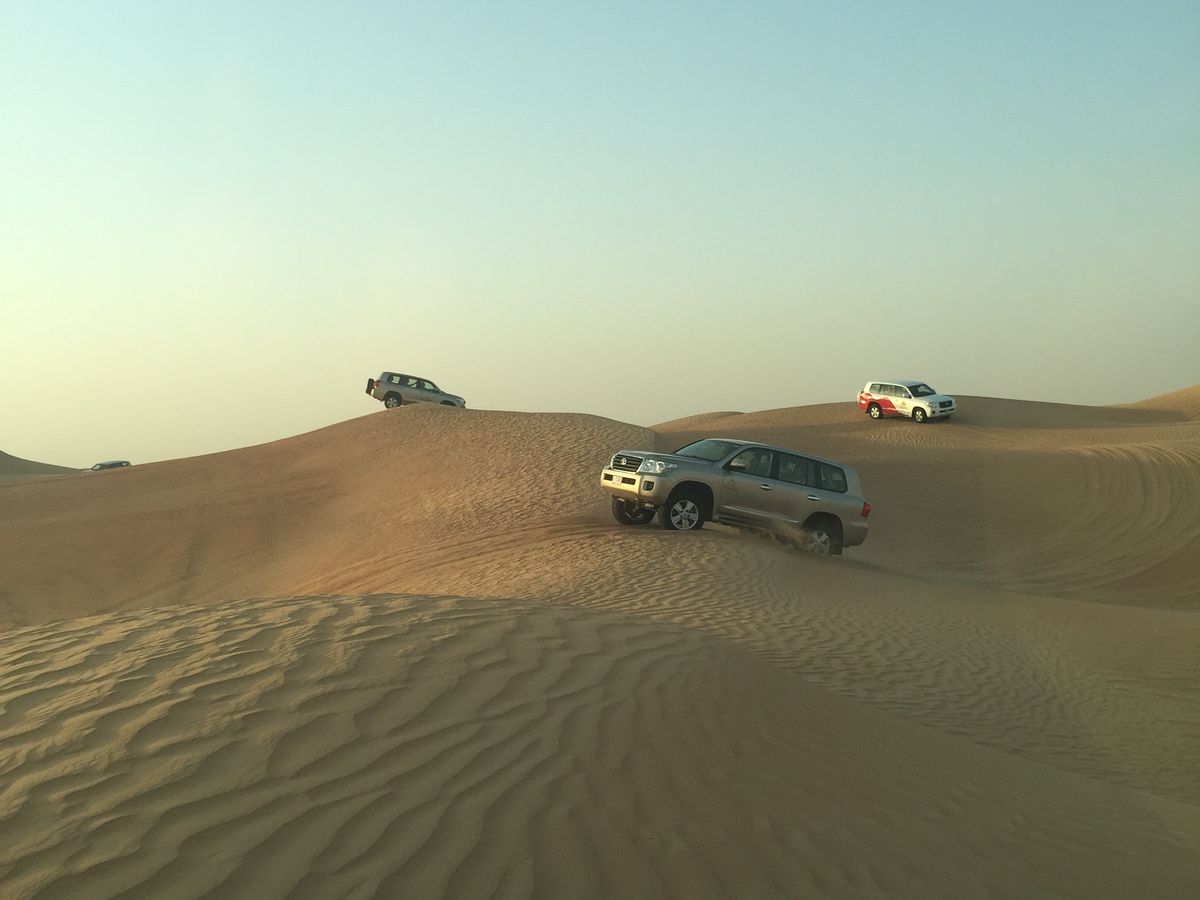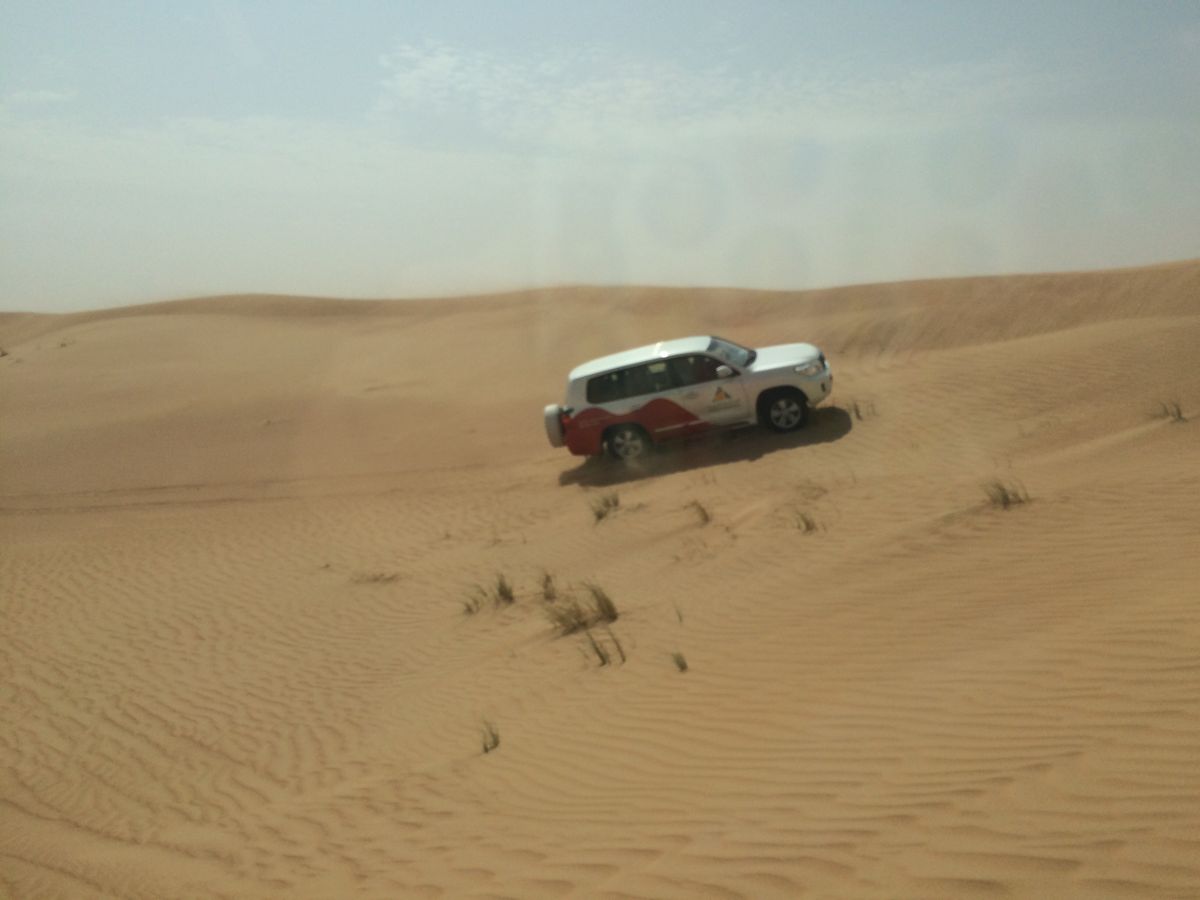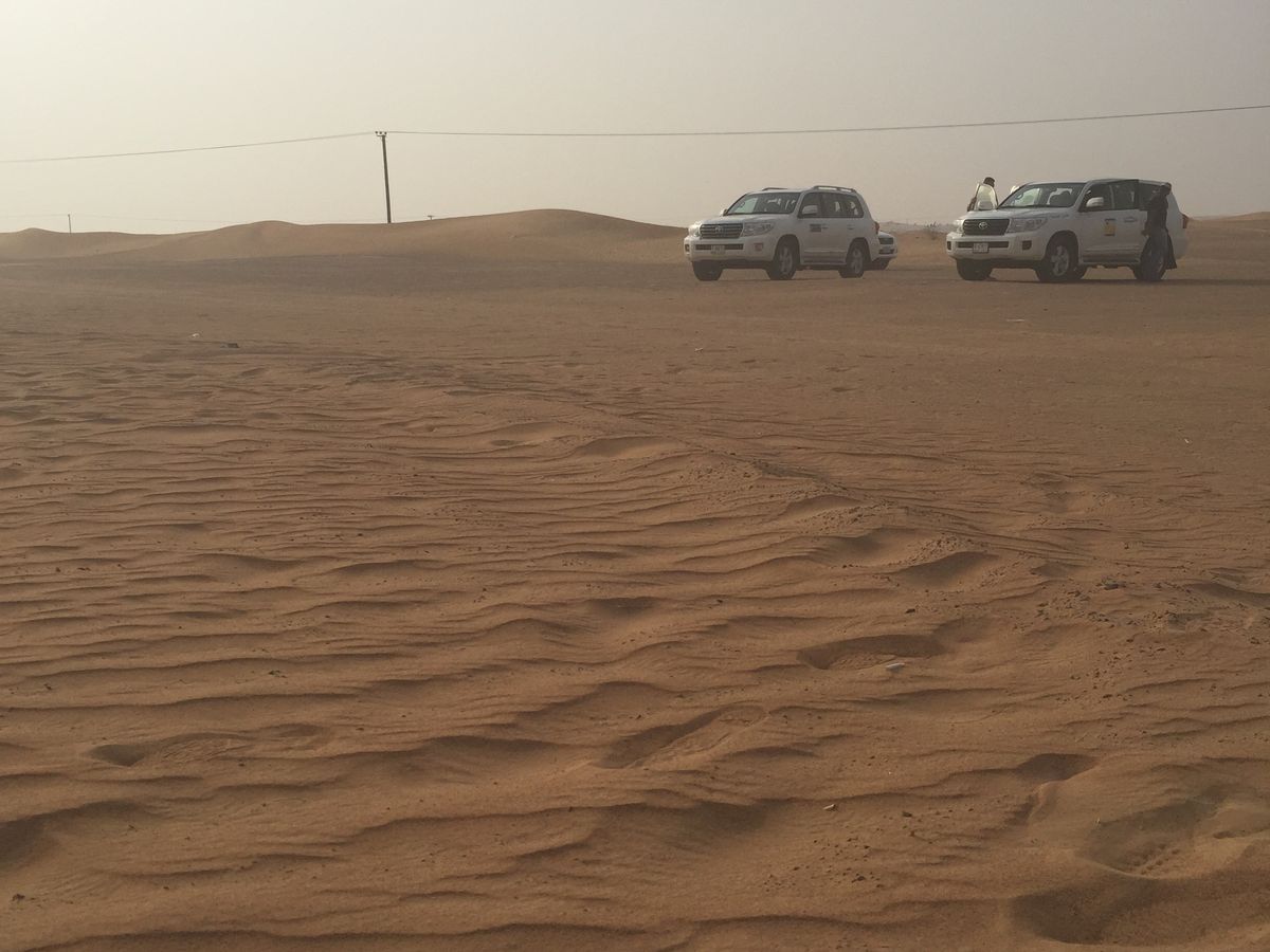 ホテルロビー(JWマリオットキース)にてピックアップしてもらい.車の中で一通りの説明がありましたが…アラブ語混じりの英語に加えて席も遠くてあまり聞こえず.この後何が起こるのかよくわからないままとりあえずデザートサファリへ。