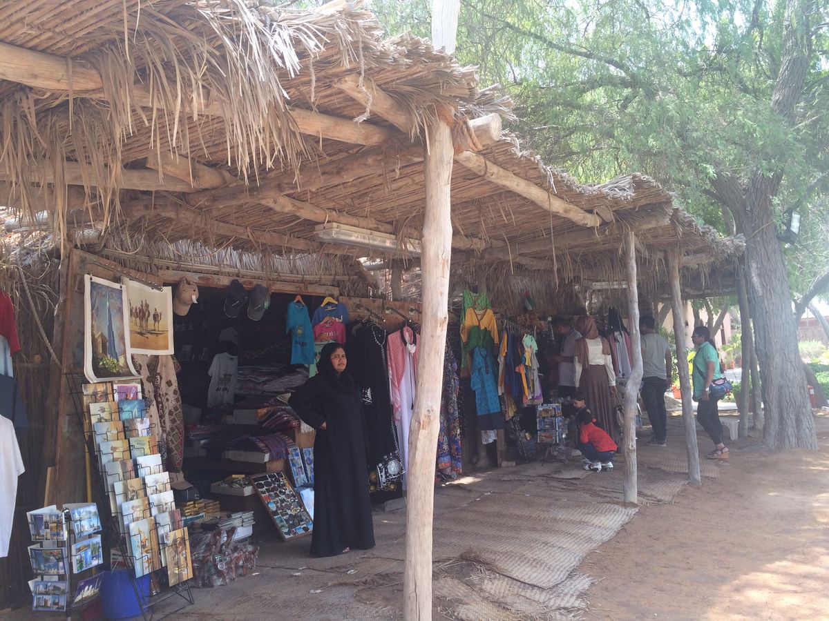 ヘリテージ・ビレッジでは、昔ながらのアラブの民芸品やお土産が沢山売っています。また、実際に民芸品を作っている様子を見せてくれます。アラブの女性が着る黒い衣装も売っているので、お土産の意味も含めてですが、午後から行った「シェイク・ザイード・グランド モスク」に備えて、衣装を購入しているツアー参加者もいました。このヘリテージ・ビレッジでは、アブダビの綺麗な海と高層ビルをバックに写真が撮れました。