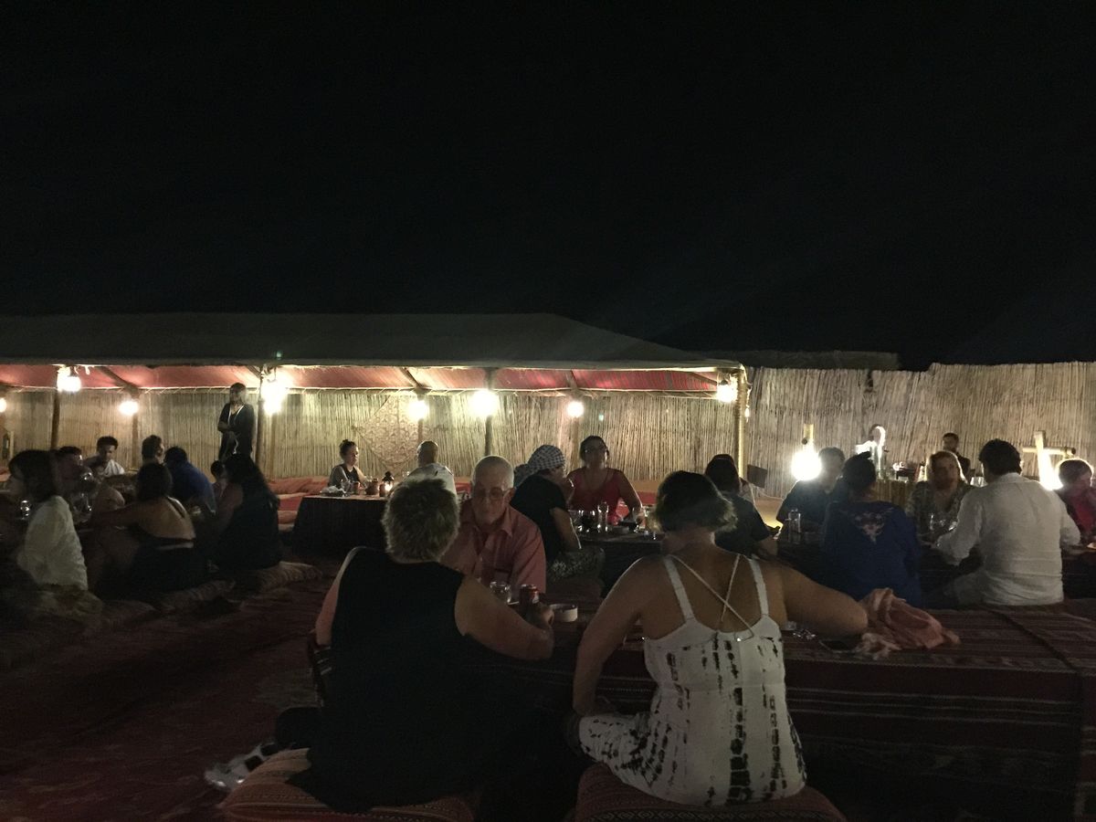 車に乗り食事の会場へ。ここがまた素敵でした★トイレもとっても綺麗でびっくり。とにかくドバイは清潔です。私たちランクルのメンバーが結束が強かったのでお互い協力して飲み物や食べ物をどんどん取りに行きお腹いっぱいになりました。基本、飲み物もワイングラスを飲みきったら持って行きそれについでもらう感じです。 食事は、チキン、ビーフ、マトンのバーベキューにオクラのカレーなど。前菜に地元のローカルフードもいただけます。