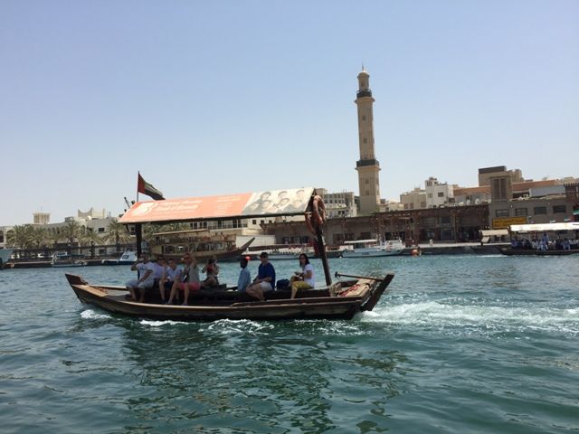 ツアーの集合は11時ごろで,朝はゆっくりできます。到着日の次の日の予定だったので,ホテルでゆっくり朝食をとってから参加できます。ただ,市内観光の時間が12時ぐらいになるので観光中はかなり暑いです。市内観光もバスではなく徒歩での観光なのでそういう意味では覚悟が必要です。でも,歩いても十分回れる範囲にあり,バスなどで回るよりは渋滞に巻こまれることもないのでスムーズに行動できるのかもしれません。途中ゴールドスーク,スパイススーク,テキスタイルスークを回り,ダウ船にも乗り,最後にドバイ博物館へ行きます。時間は短いですが,効率的にオールドドバイを観光できます。ただ,今回はガイドさんの集合が30分以上も遅れたことはいただけませんが,ほかの参加者をピックアップしてからのことですから渋滞が多い国では仕方ないかもしれません。